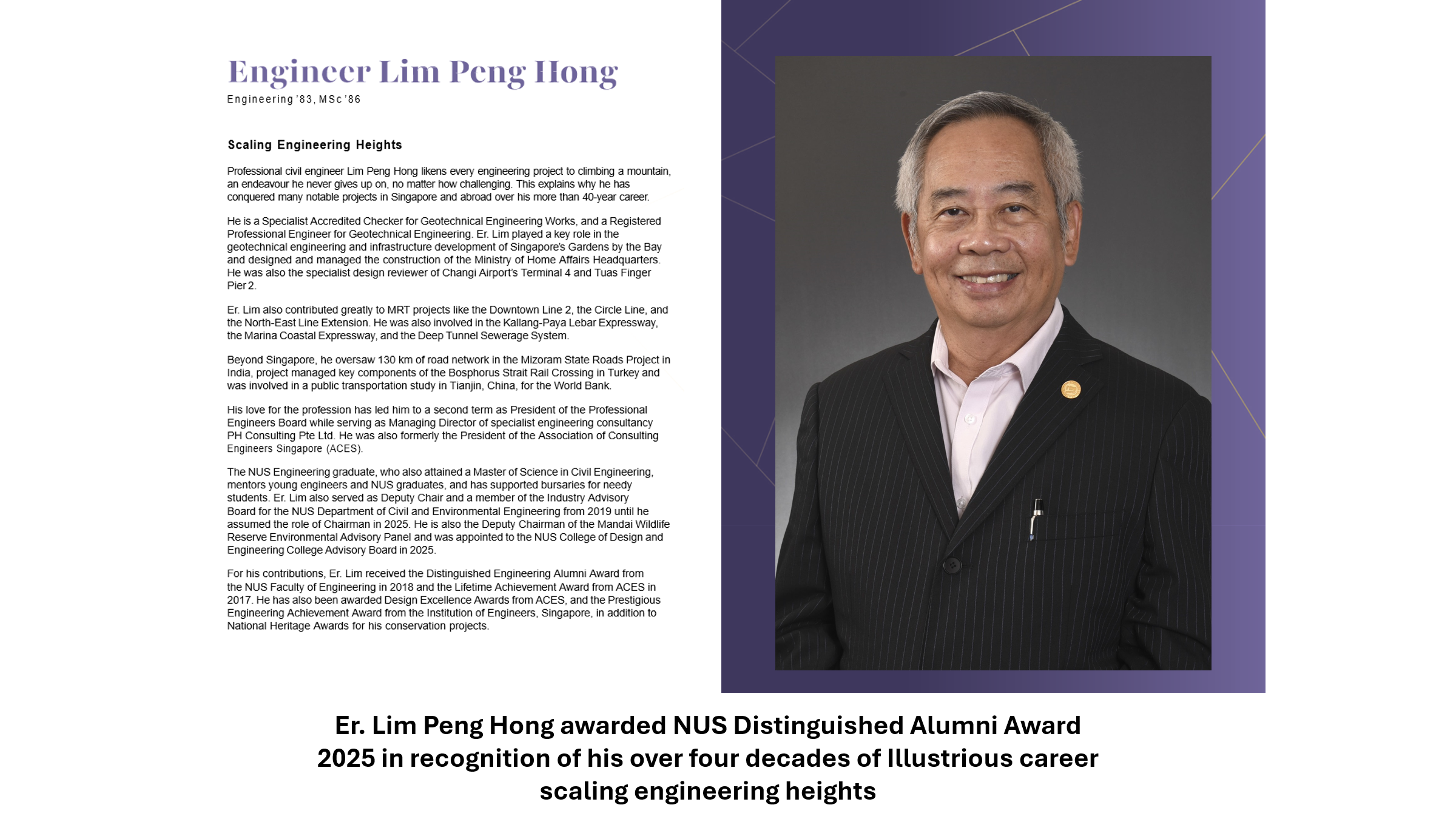 Engineer Lim Peng Hong President of PEB Honoured with NUS Distinguished Alumni Award 2025