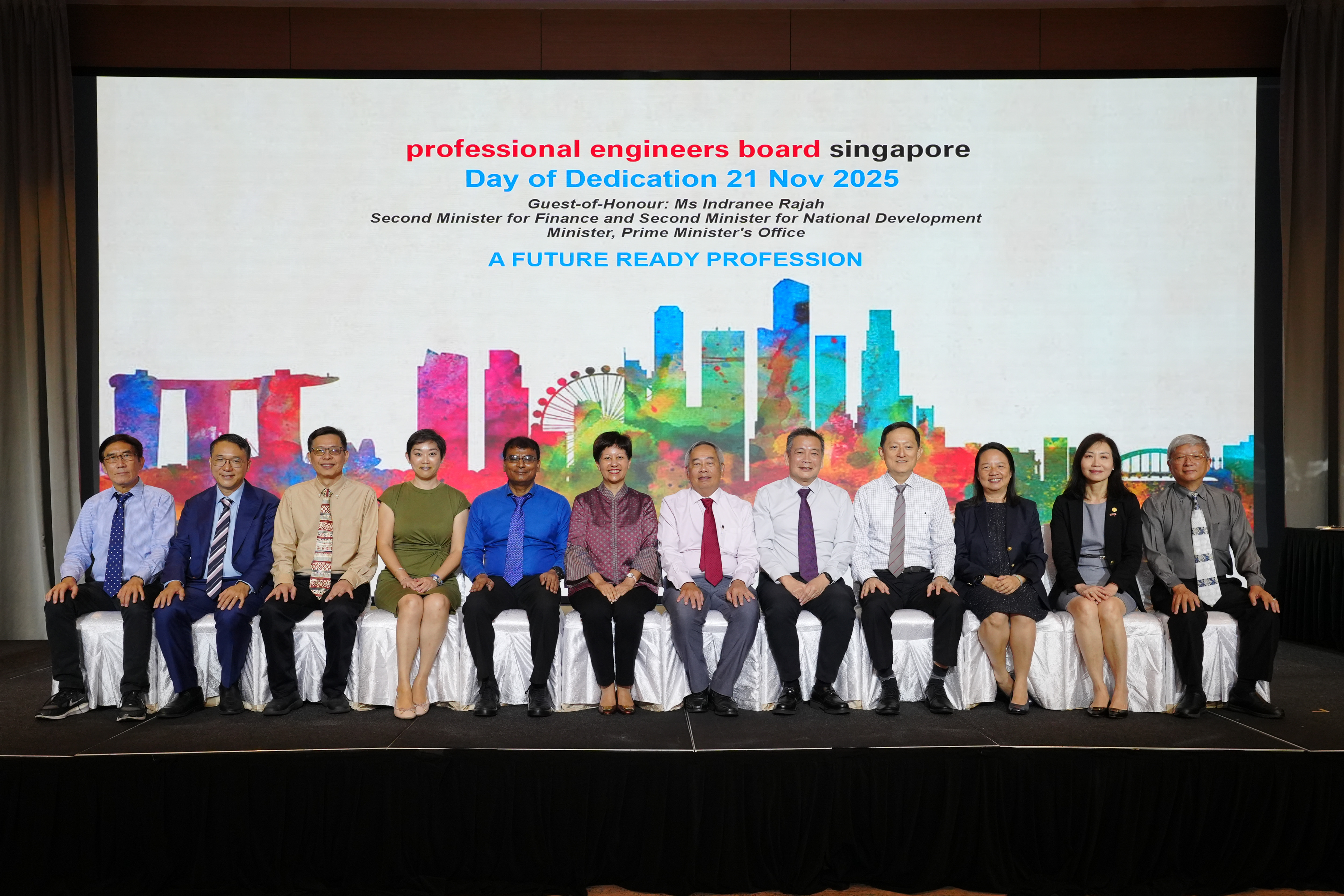 The Professional Engineers Board (PEB)'s Day of Dedication 2025, themed "A Future Ready Profession," took place on 21 November at One Farrer Hotel. Over 340 attendees, including 88 newly minted Professional Engineers (PEs), 11 Specialist PEs, and 6 ASEAN Chartered PEs, gathered to celebrate the achievements and commitments of the engineering community in advancing Singapore's built environment. The atmosphere reflected a strong sense of pride and commitment to the engineering profession.